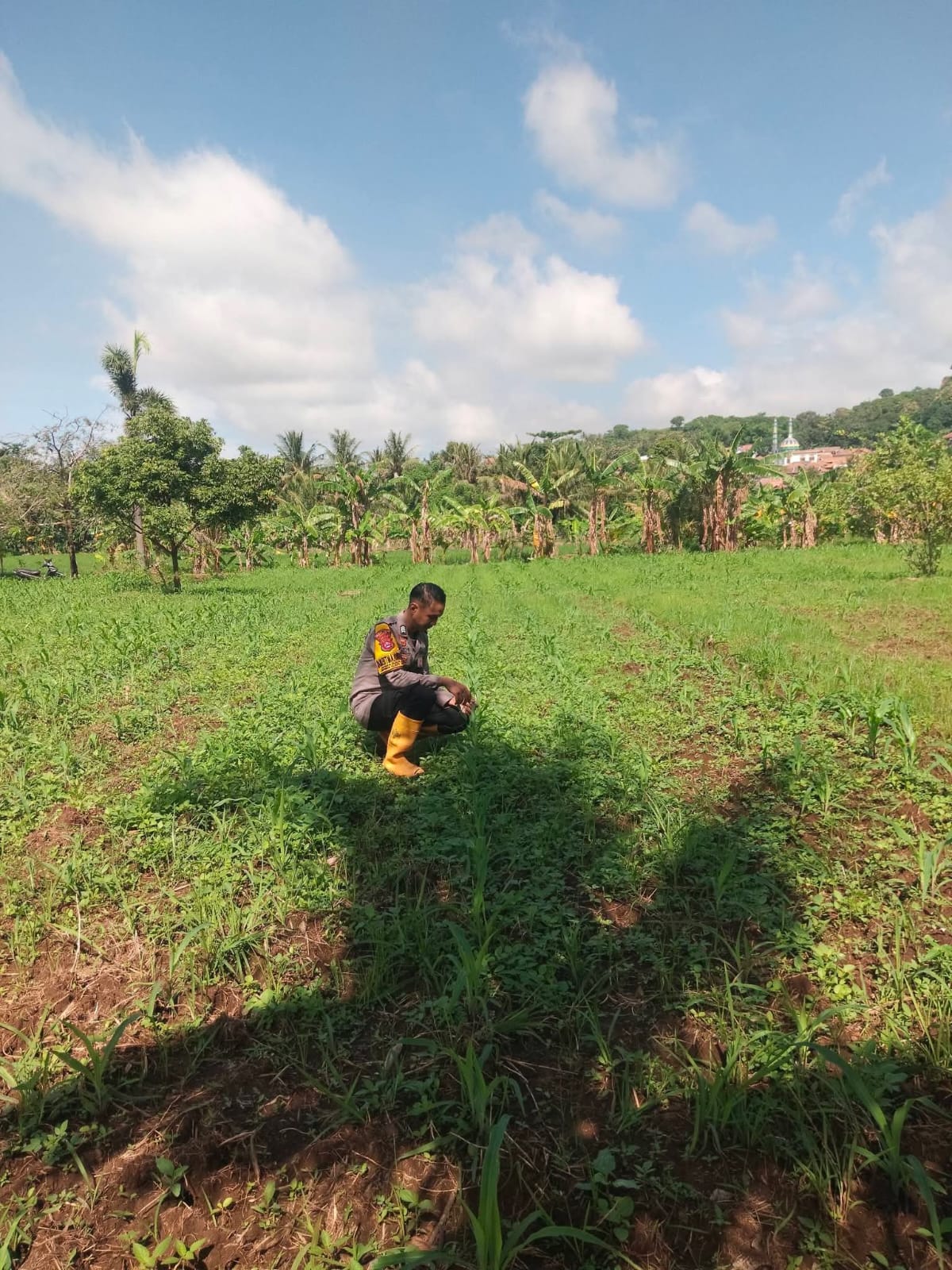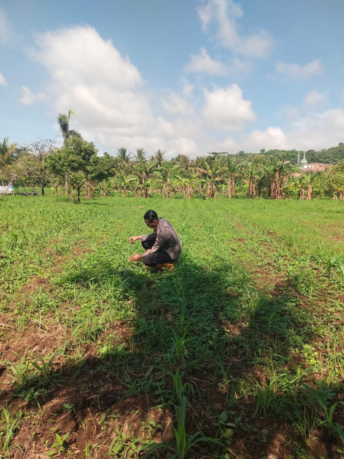 Pantau lahan jagung pok tani sinarjaya kecamatan.puloampel Desa Pulo Panjang oleh Bhabinkamtibmas Polsek Puloampel