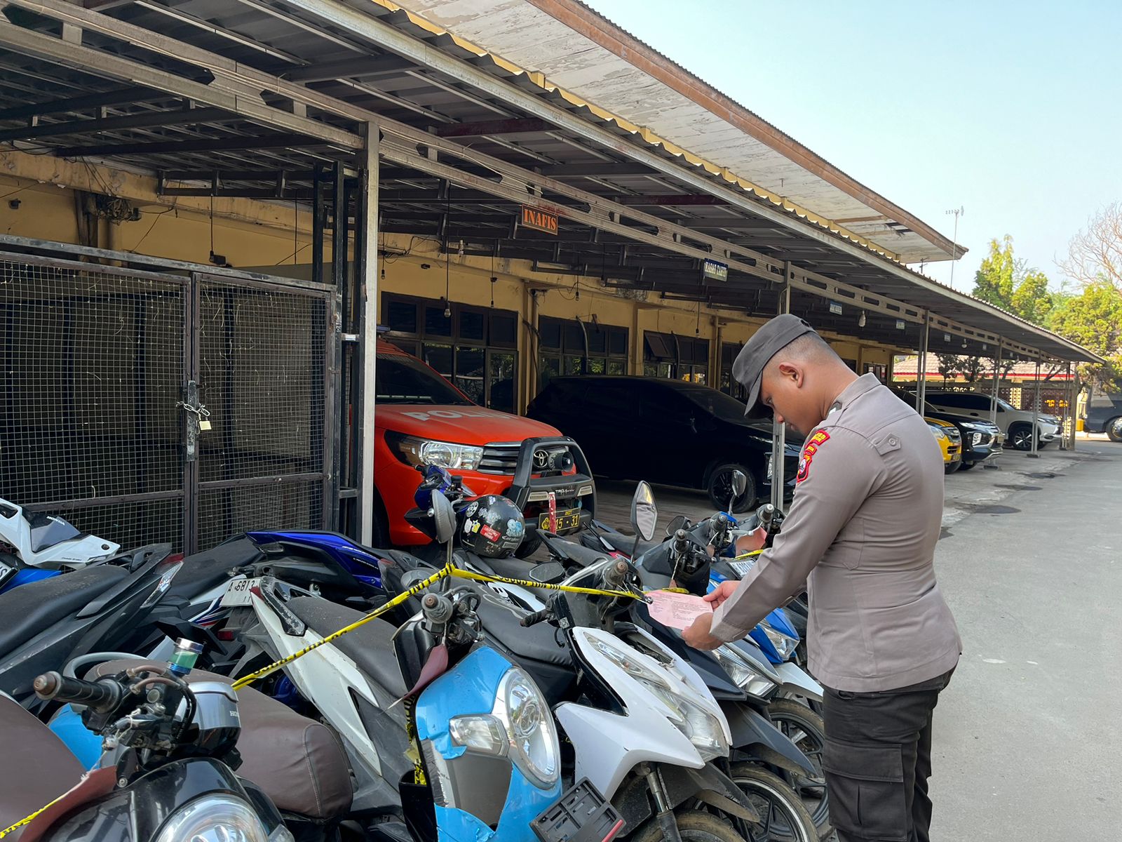 Anggota Piket Tahti Polres Cilegon,HarusMelakukan Kegiatan Rutin Pengecekan Kelengkapandan Barang Bukti Di Gudang Barang Bukti.