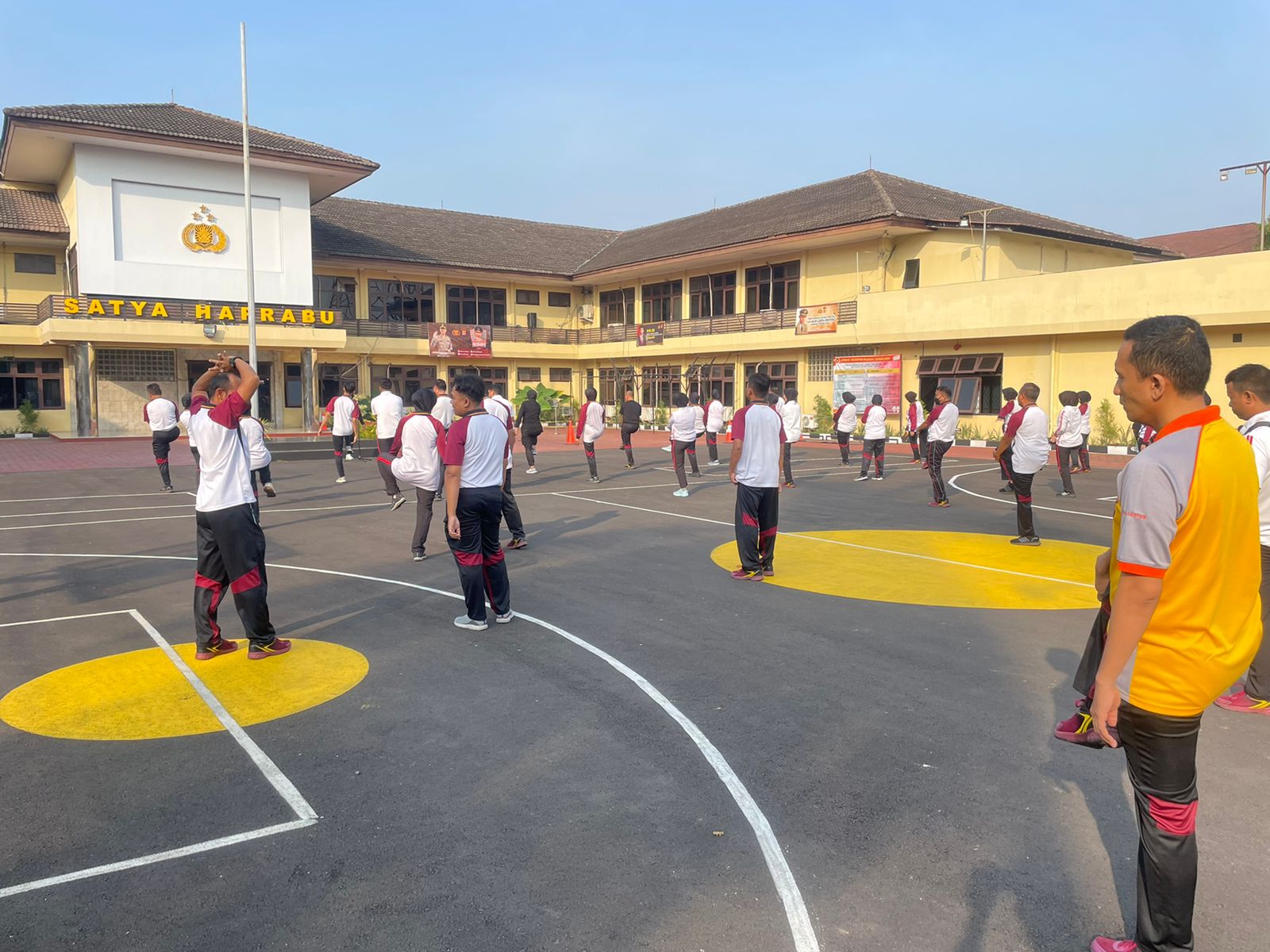 Personel dan ASN Polres Cilegon Ikuti Pembinaan Jasmani Rutin