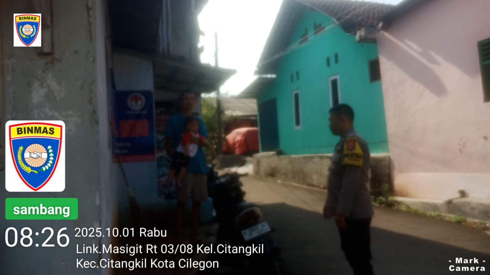 Cilegon - Bhabinkamtibmas Polsek Ciwandan Polres Cilegon Polda Banten Melaksanakan kegiatan Dialogis/Sambang Door to Door Sistem (DDS) Di daerah binaannya serta memberikan Pesan-pesan Kamtibmas Guna Menciptakan situasi Harkamtibmas yang Aman dan nyaman, Rabu (01/10/2025).