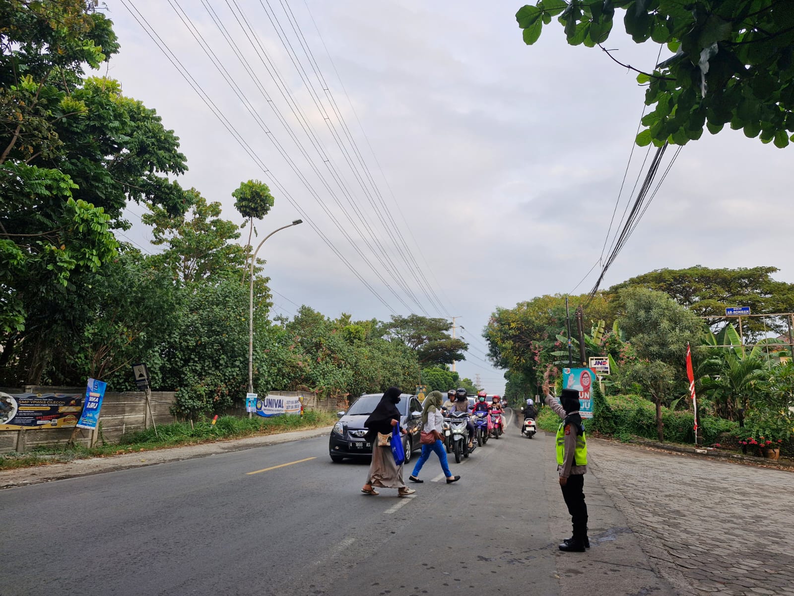 Polres Cilegon, Aipda Emi Prasetyo melaksanakan kegiatan pengaturan arus lalu