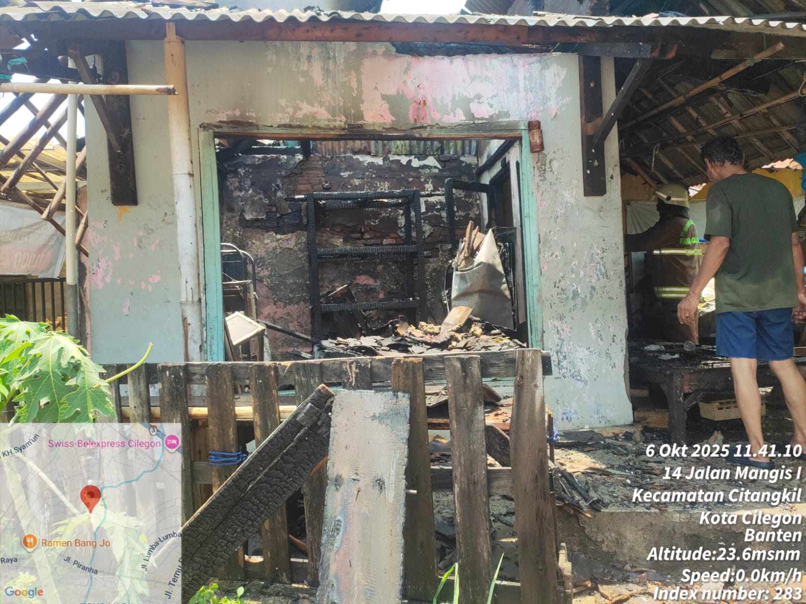 Cilegon - Polsek Ciwandan merespons cepat kebakaran warung dan dapur rumah milik Sdri. Mas'ah di Link Tegal Cabe, Kelurahan Citangkil, Kecamatan Citangkil, Kota Cilegon, pada Senin, 6 Oktober 2025. Api berhasil dipadamkan setelah tiga unit mobil pemadam kebakaran tiba di lokasi,Senin (06/10/2025).