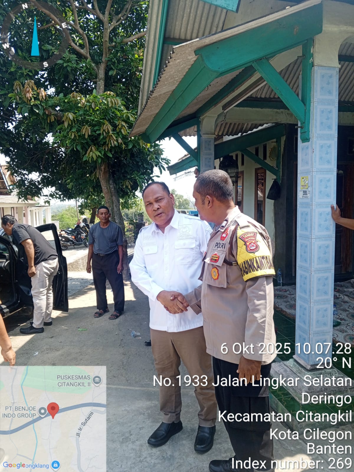 Cilegon - Bhabinkamtibmas Kelurahan Lebak Denok Polsek Ciwandan Polres Cilegon Polda Banten AIPTU Yudi Setiawan Mendampingi Ketua DPRD Kota Cilegon, H. Sokhidin, SH, melakukan kunjungan ke lokasi penanaman pohon di jalan rusak di Link Cidongklang, Kelurahan Lebakdenok, Kecamatan Citangkil. Kunjungan ini merupakan tindak lanjut dari aksi spontanitas warga yang menanam pohon di jalan rusak pada hari, Senin (06/10/2025).