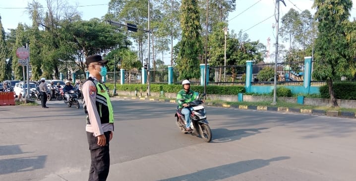 PENGATURAN LALU LINTAS DILAKUKAN PERSONIL POLSEK PURWAKARTA GUNA CEGAH KEMACETAN