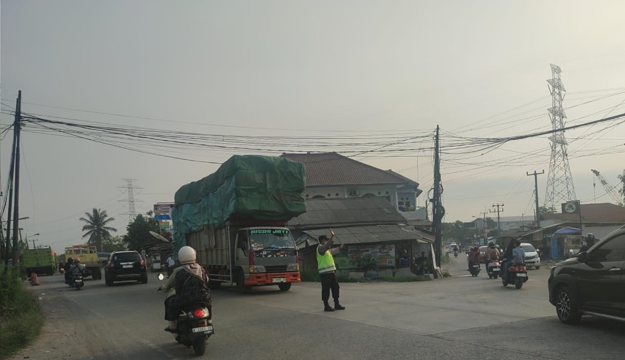 Bripka Leo dan Brigadir Bagus Polsek Bojonegara Pengaturan lalu lintas di Simpang Bojonegara