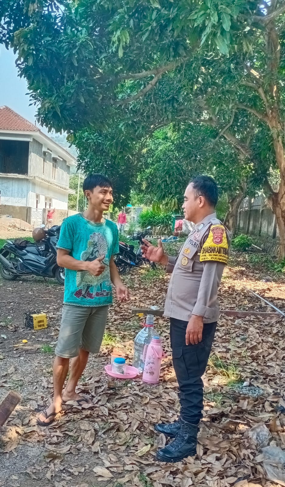 Dalam kesempatan tersebut Bhabinkamtibmas menyampaikan himbauan dan pesan pesan kamtibmas dan menyampaikan tentang pentingnya kerjasama dalam membina Kamtibmas baik dengan aparat pemerintahan setempat dan masyarakat agar situasi keamanan selalu kondusif, serta diharapkan agar menyampaikan permasalahan sekecil apapun sehingga dapat diselesaikan secepatnya dengan cara kekeluargaan.
