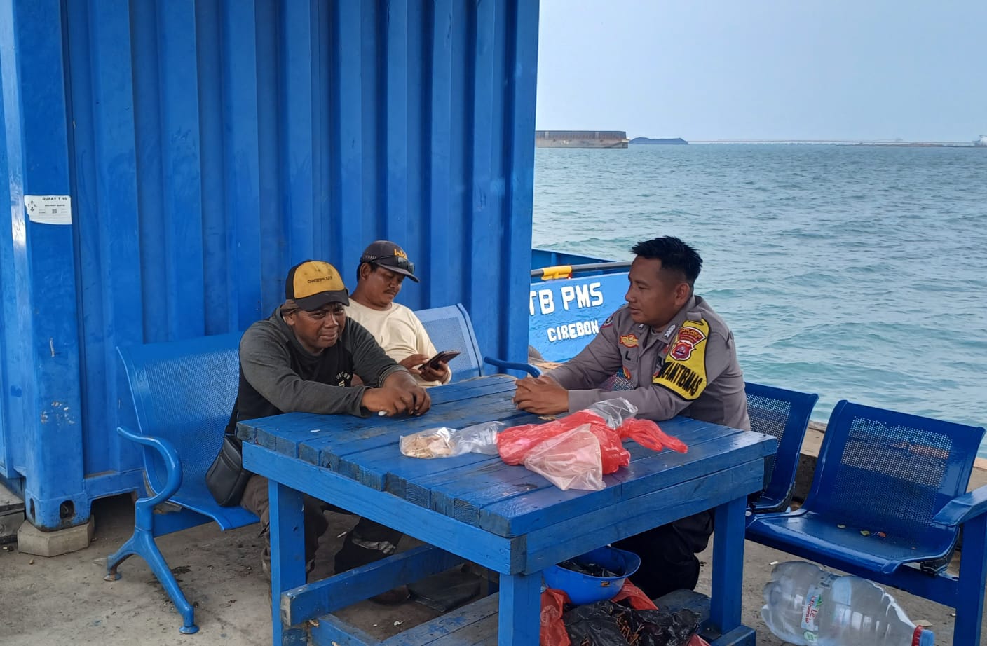 Jalin Silaturahmi, Bhabinkamtibmas Pelabuhan Polsek KSKP Banten berbincang dengan Buruh Pelabuhan