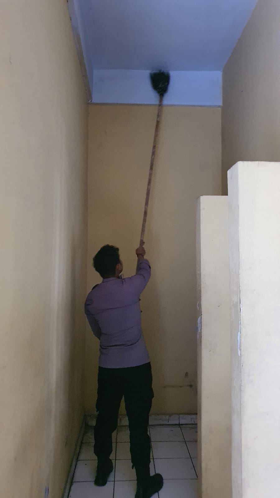 Anggota Piket Sattahti Polres Cilegon Selalu Melakukan Merutinkan Bersih-Bersih Di Sekitar Rutan Polres Cilegon Agar Terhindar Dari Penyakit.