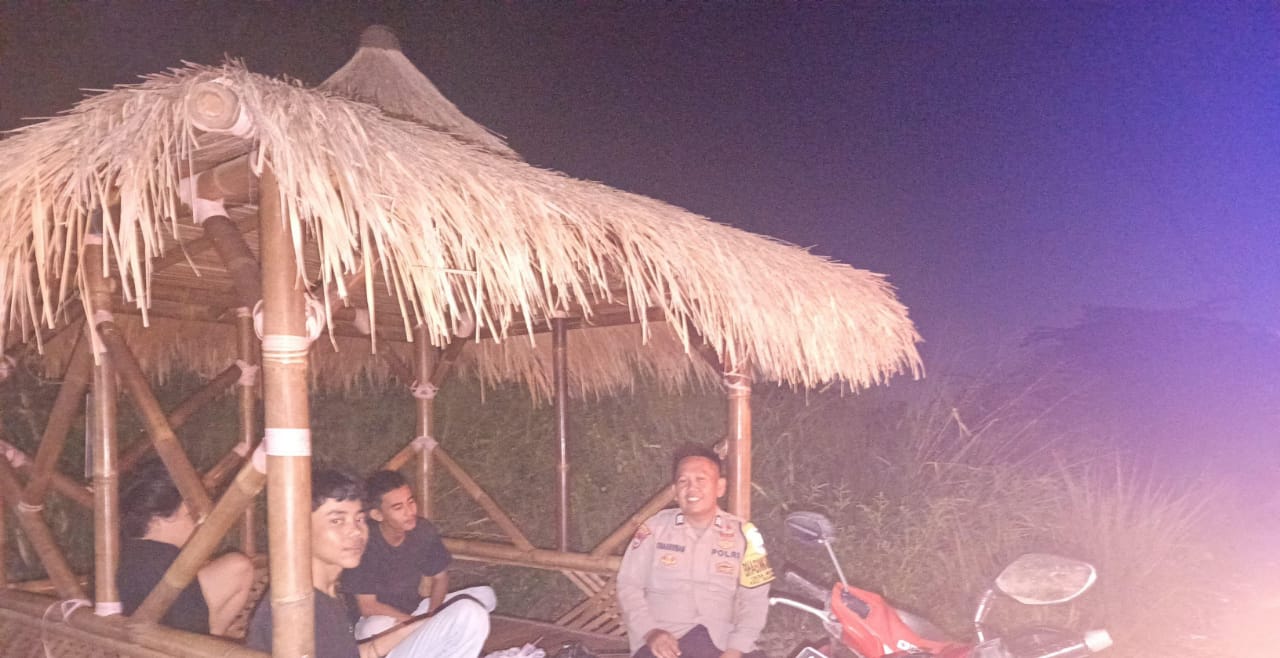 Nongkrong Asik Bareng Bripka Zenal Bersama Brigadir Chaeruman Polsek Bojonegara Di Pos Kamling Sampaikan Pesan-pesan Kamtibmas Dan Sosialisasi Call Center 110 Ke Petugas Ronda
