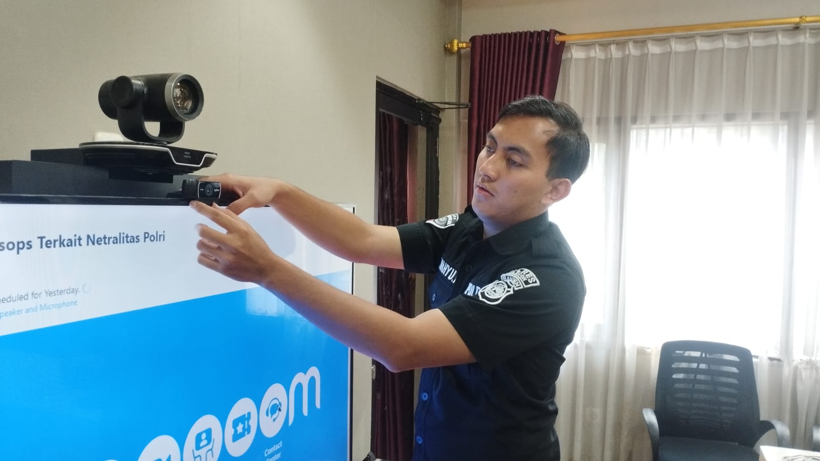 Anggota Tik Polres Cilegon Menyiapkan Sarana dan Prasarana Untuk Kegiatan Zoom meeting