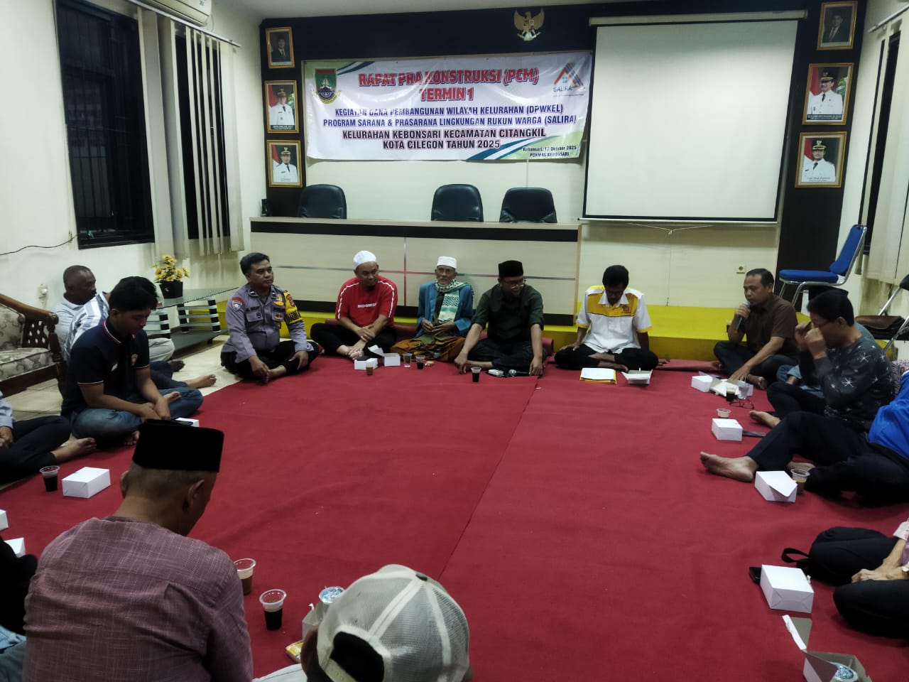 Cilegon - Bhabinkamtibmas Kelurahan Kebonsari Polsek Ciwandan Polres Cilegon Polda Banten AIPDA M. Enday Melaksanakan kegiatan Rapat Pra Kontruksi Pelaksanaan pembangunan Desa Kelurahan Kebonsari Kecamatan Citangkil kota Cilegon, Sabtu (18/10/2025).