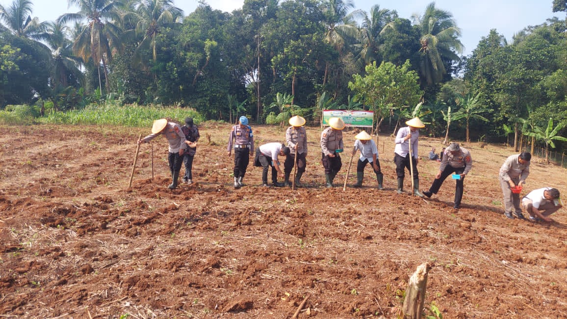 Penanaman Jagung serentak Kuartal IV Seluruh Indonesia di lahan milik kelompok tani Bpk. Maman Rt. 01/01 Kp. Macute Kel. Angsana Kec. Mancak-Serang daerah hukum Polres Cilegon.