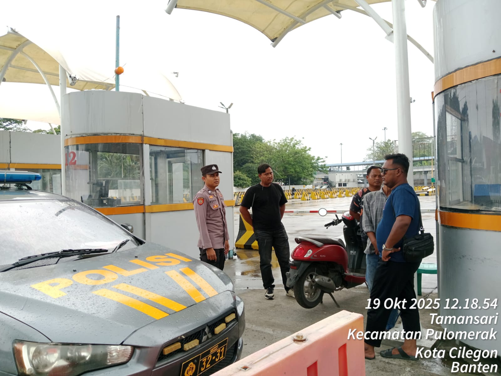 Cilegon - Personel Polsek Kskp Merak Polres Cilegon Polda Banten melaksanakan sambang dan patroli kawasan pelabuhan merak dalam rangka menjaga Harkamtibmas di Kawasan Pelabuhan Merak, Minggu (19/10/2025).