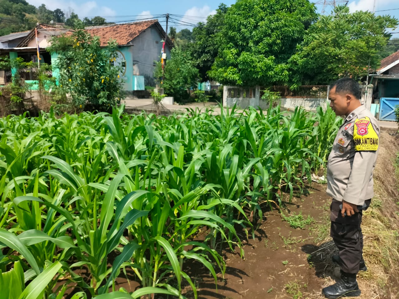 Ketahanan pangan Kel. Lebakgede kec. Pulomerak, Kapolsek Pulomerak lakukan pengecekan tanaman jagung