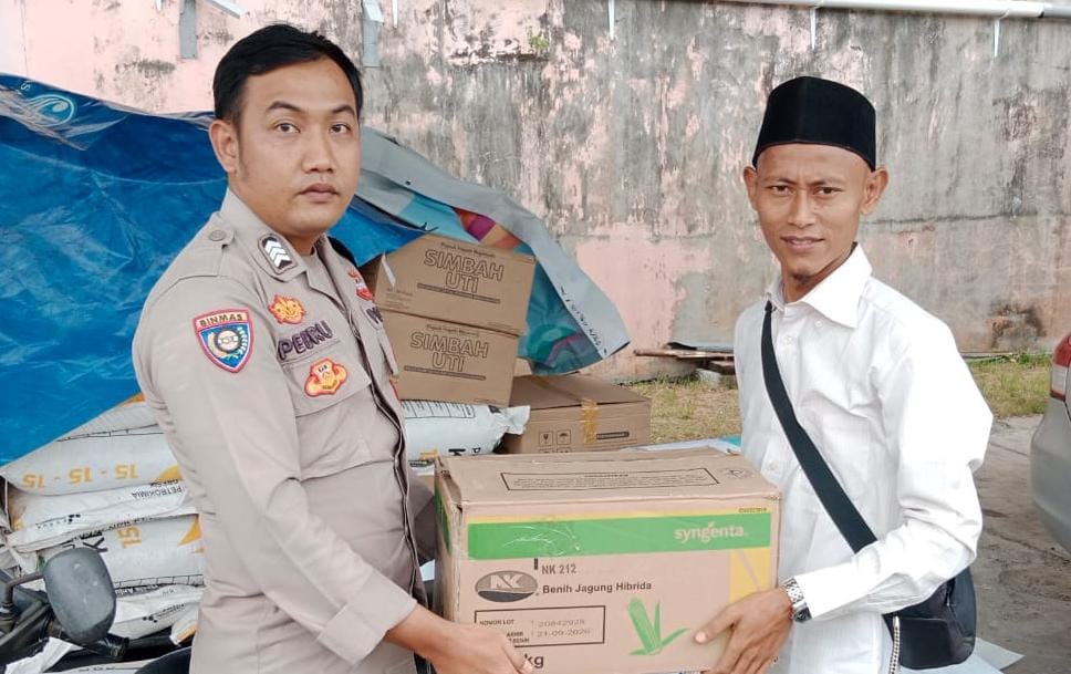 Kegiatan Personil Polsek Anyar Berikan Bantuan Pupuk dan Insektisida dari Dinas Pertanian Provinsi Banten Kepada Kelompok Tani