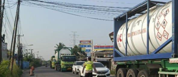 Aman Di Jalan Raya, Bripka Zenal bersama Brigadir Chairuman Laksanakan Pengaturan Lalu Lintas Di Persimpang Wadas Bojonegara