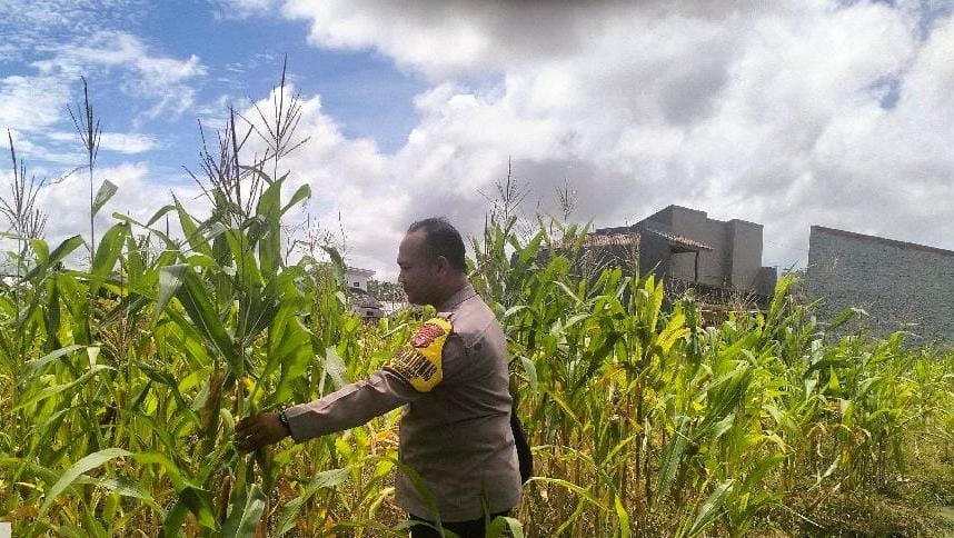 Dukung ketahanan pangan, bhabinkamtibmas cek perkebunan jagung