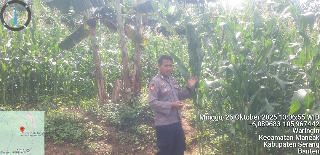 Kapolres Cilegon AKBP Dr. Martua Raja Taripar Laut Silitonga Melalui Kapolsek KP Banten Polres Cilegon AKP Fredo Leonard Bahwa pelaksanaan kegiatan Monitoring pembukaan dan pengolahan lahan di Kp. Kupak Ds. Waringin Kec. Mancak. Lahan tersebut kurang lebih 10 Ha, yang akan dikelola oleh kelompok Tani, Petani Muda 5 untuk penanaman jagung di di periode kuartal III Tahun 2025.
