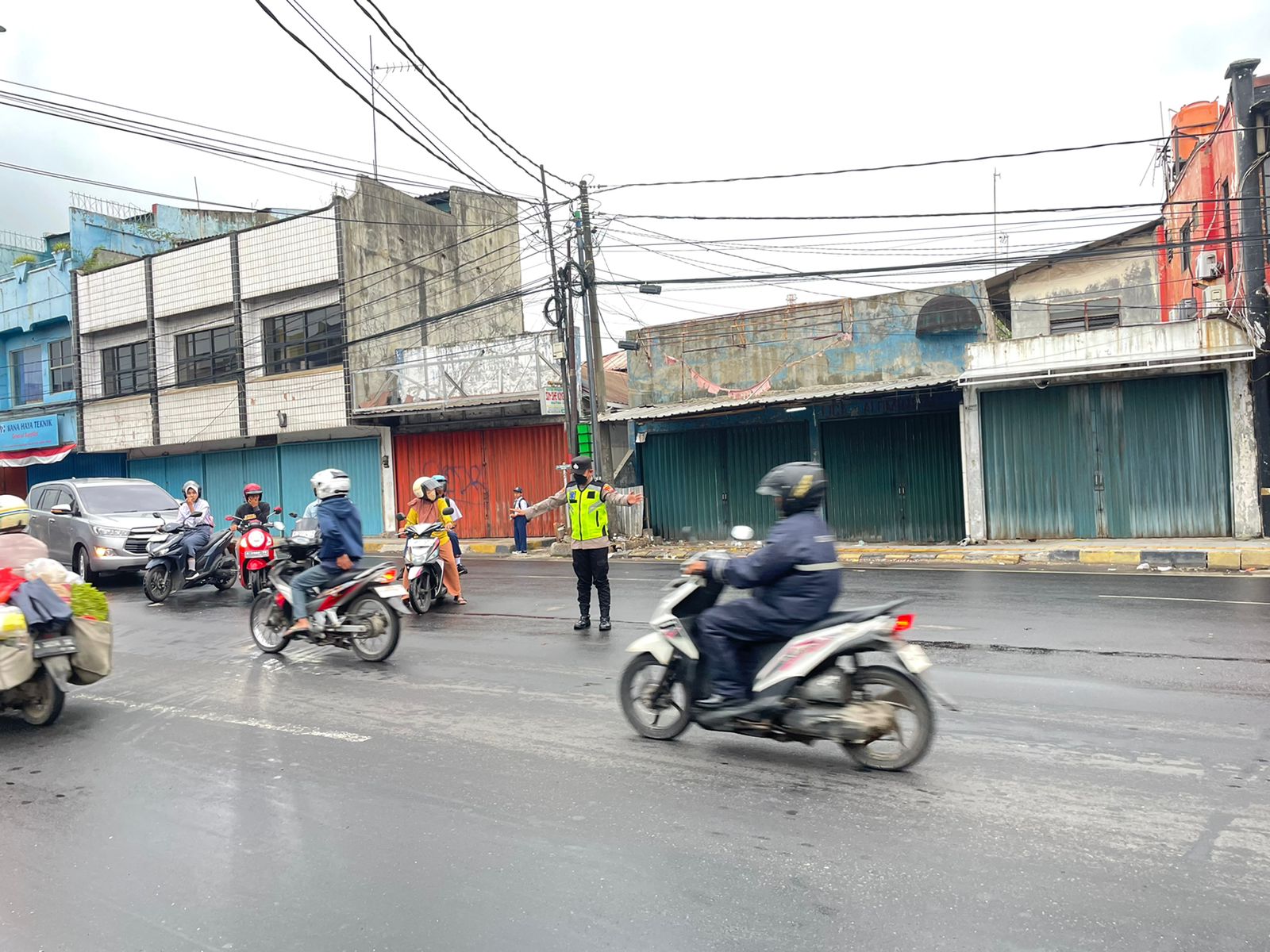 Cilegon,Polres Cilegon Polda Banten Pada rabu 04/11/2025 Pukul 06.30 Wib, Personil Siwas Polres Cilegon, Brigpol Hadi sudrajat melaksanakan kegiatan pengaturan arus lalu lintas di Jalur Protokol jalan utama Kota Cilegon tepat nya di jalur protokol Kota Cilegon.