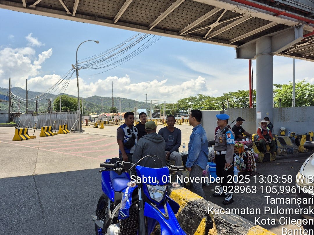 Cilegon - Personel Polsek Kskp Merak Polres Cilegon Polda Banten melaksanakan sambang dan patroli kawasan pelabuhan merak dalam rangka menjaga Harkamtibmas di Kawasan Pelabuhan Merak, Sabtu (01/11/2025).