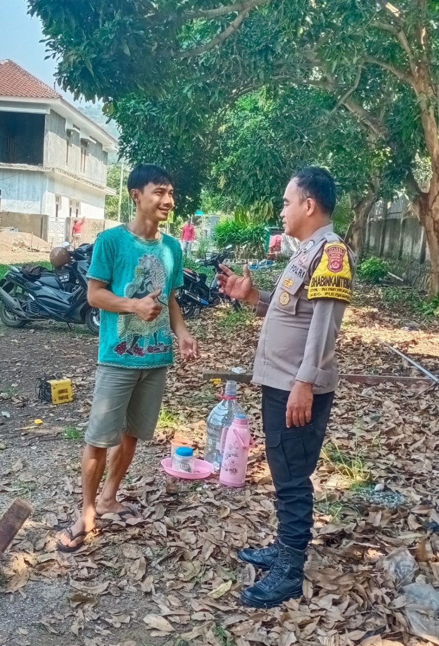 Dalam kesempatan tersebut Bhabinkamtibmas menyampaikan himbauan dan pesan pesan kamtibmas dan menyampaikan tentang pentingnya kerjasama dalam membina Kamtibmas baik dengan aparat pemerintahan setempat dan masyarakat agar situasi keamanan selalu kondusif, serta diharapkan agar menyampaikan permasalahan sekecil apapun sehingga dapat diselesaikan secepatnya dengan cara kekeluargaan.