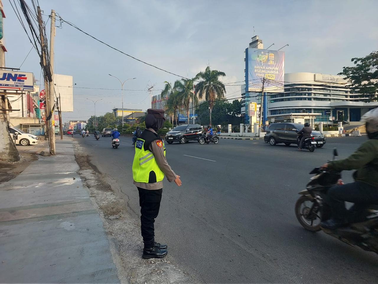 Personel Sium Polres Cilegon Laksanakan Strong Point Pagi di Simpang Jombang