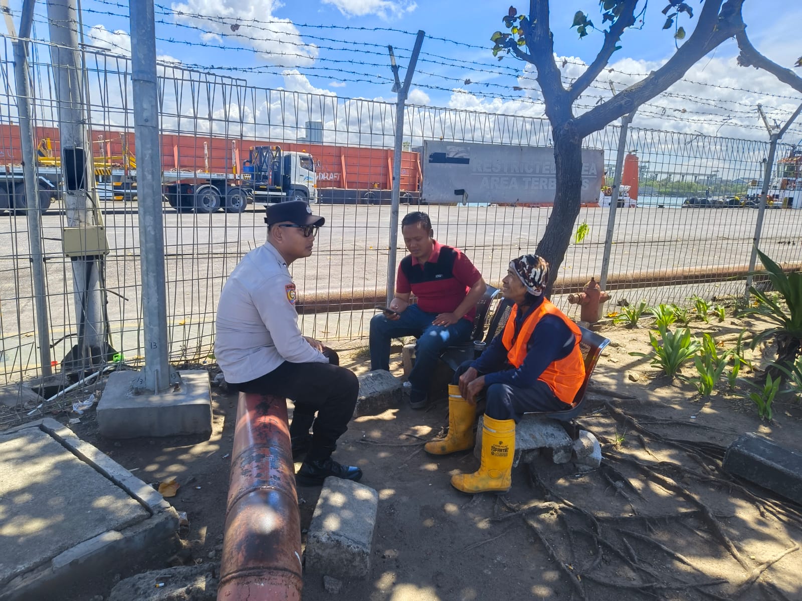Jalin Silaturahmi, Bhabinkamtibmas Pelabuhan Polsek Kawasan Pelabuhan Banten berbincang dengan Buruh Pelabuhan