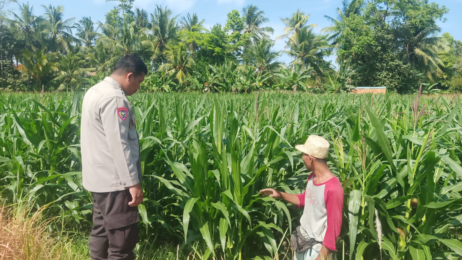 Monitoring ini dilakukan terhadap tanaman jagung yang telah memasuki usia tanam 79 hari. Selain melihat perkembangan tanaman, Bhabinkamtibmas juga melakukan dialog dengan petani untuk mengetahui kendala yang dihadapi serta memberikan motivasi dalam meningkatkan hasil pertanian.