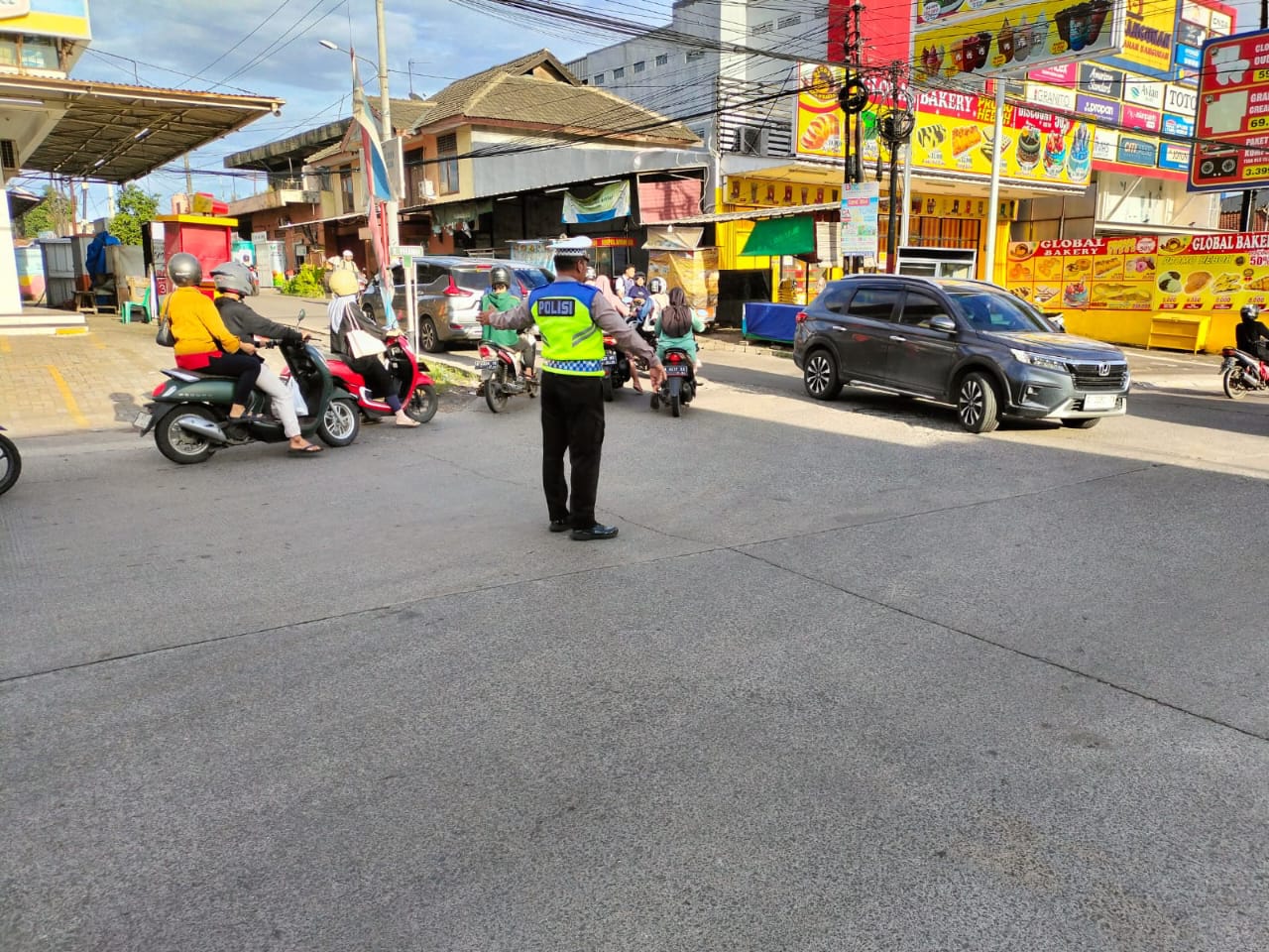 Pengaturan arus lalin Polsek Cilegon lancarkan arus kendaraan.