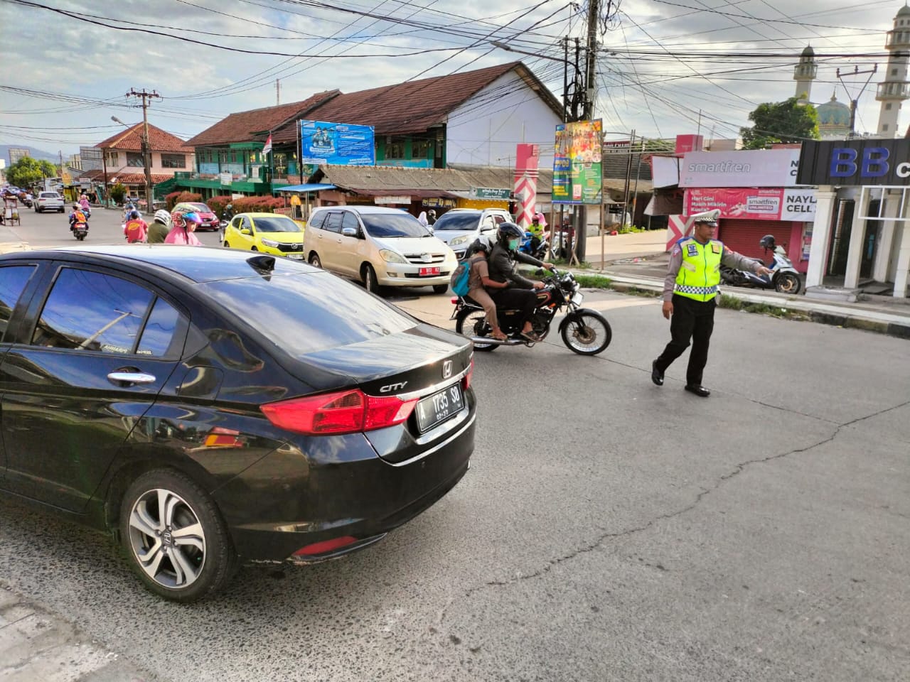 Pengaturan arus lalin Polsek Cilegon Polres Cilegon lancarkan arus kendaraan.
