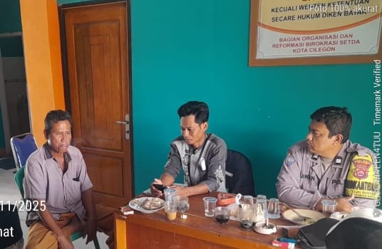-POLRES CILEGON– Bhabinkamtibmas Kelurahan Tegalbunder, Aiptu Wawan Setia Budi, melaksanakan kegiatan sambang ke kantor kelurahan binaannya, Kelurahan Tegalbunder, Kecamatan Purwakarta, Kota Cilegon. Kegiatan ini bertujuan untuk menjalin silaturahmi serta menyampaikan himbauan Kamtibmas kepada warga dan staf kelurahan.Jumat.(07-11-2025).