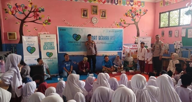 -POLRES CILEGON–Polda Banten. Kapolsek Purwakarta, Iptu Sukanda, menghadiri kegiatan Jumat Berkah yang diselenggarakan oleh Koperasi Simpan Pinjam (KSP) di SD Kubang Kutu I, Link. Ramabaru Kelurahan Kebondalem. Kegiatan ini diikuti oleh siswa-siswi SD Kubang Kutu I, kepala sekolah, pihak KSP, Kanit Binmas Ipda Surahman, dan Bhabinkamtibmas Aiptu Daryo EFendi.Jumat.(07-11-2025).