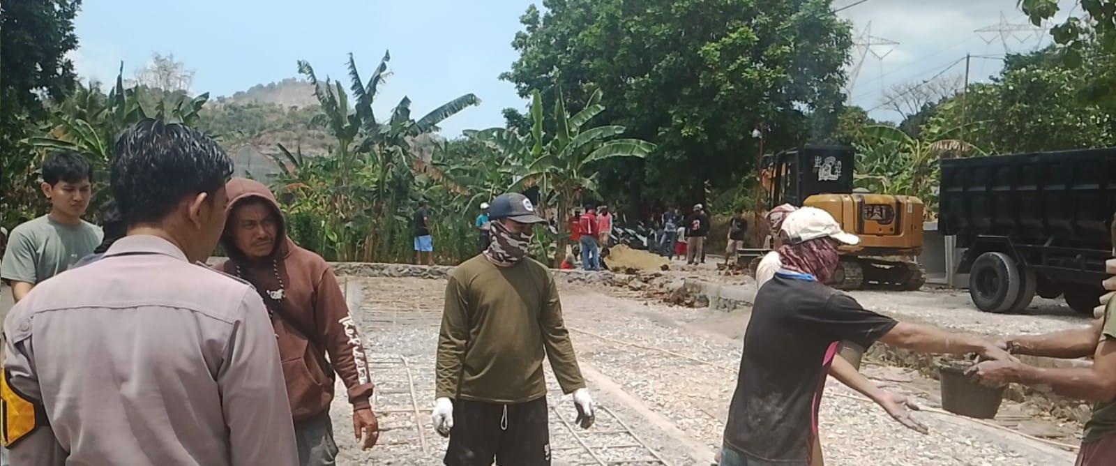 Hampiri Warga Sedang Kerja Bakti, Anggota Bhabinkamtibmas Berikan Imbauan Cegah Aksi Curanmor siang Hari