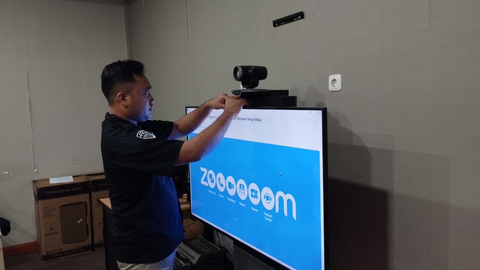 Anggota Tik Polres Cilegon Menyiapkan Sarana dan Prasarana Alkom Dalam pelaksanaan tugas tersebut anggota TIK Polres Cilegon yang bertanggung jawab untuk menyiapkan peralatan sarana alkom berupa zoom meeting. Selain itu agar di tidak ada gangguan pada jaringan, sebelum pelaksanaan anggota TIK melakukan pemeriksaan terhadap sarana dan prasarana tersebut . Satu jam sebelum sarana zoom meeting digunakan. Kapolres Cilegon AKBP. DR. MARTUA RAJA TARIPAR LAUT SILITONGA. melalui Kasi TIK AIPTU Suwanto menyampaikan bahwa “untuk menunjang kelancaran penyampaian informasi anggota TIk Polres Cilegon selalu memeriksa sarana dan prasarana tersebut, sebelum maupun pada saat pelaksanaan