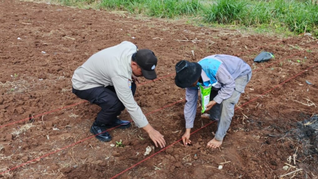 Giat Bhabinkamtibmas Lebakgede bersama poktan kepindis saat tandur jagung.