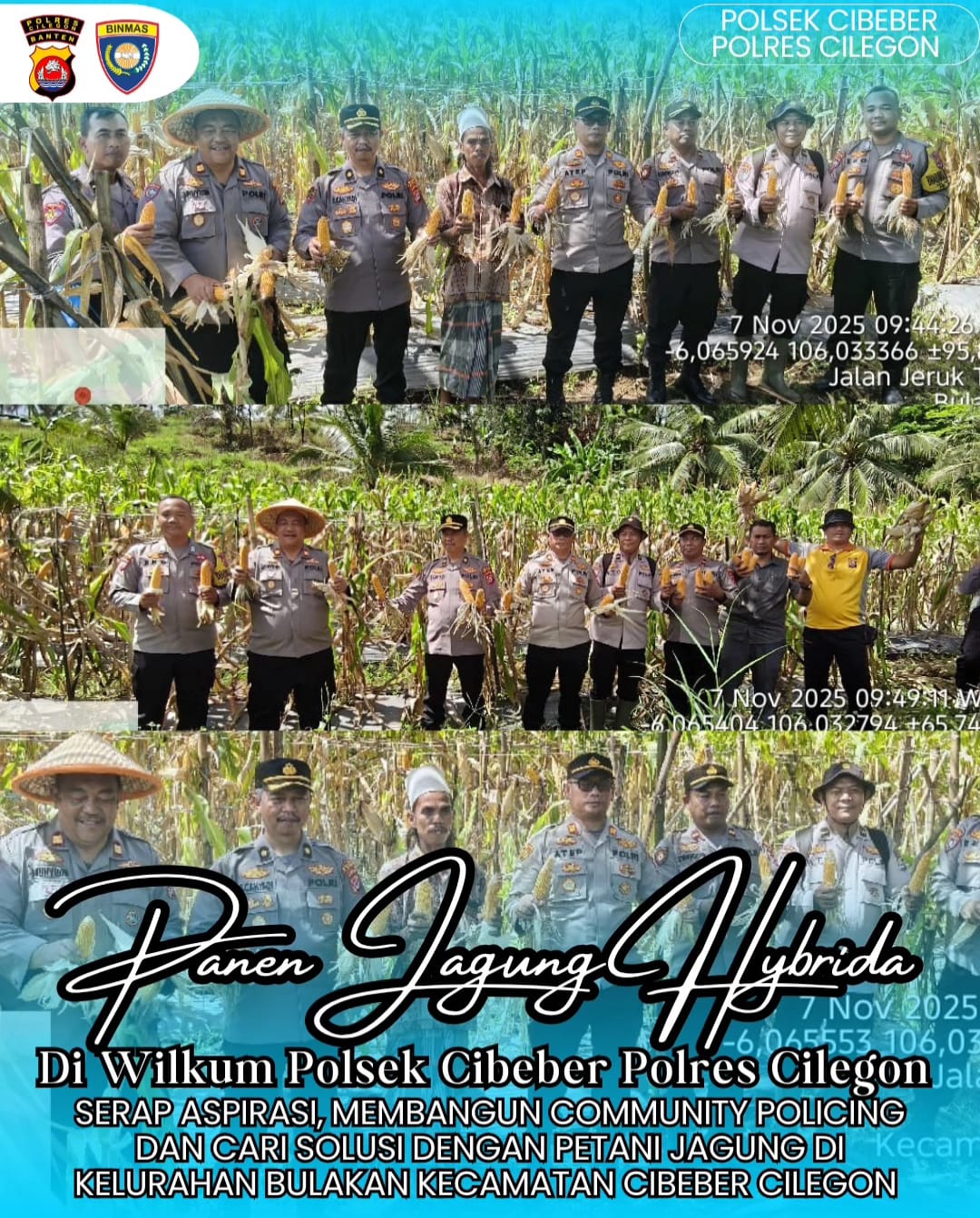 Polres Cilegon melaksanakan panen jagung hybrid di lahan pertanian yang dikelola oleh anggota Polres Cilegon. Panen jagung hybrid ini merupakan hasil kerja keras anggota Polres Cilegon yang telah membudidayakan jagung hybrid di lahan pertanian tersebut.