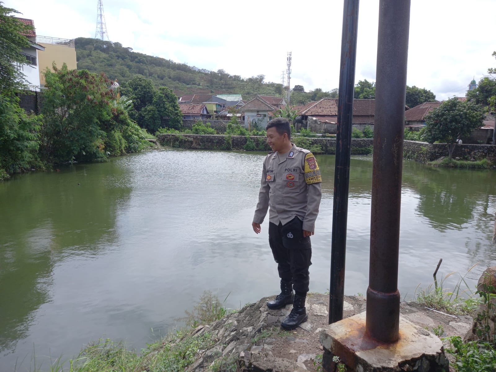 Bhabinkamtibmas Bripka Agustoni melaksanakan monitoring kondisi waduk di wilayah Kelurahan Kotabumi, Kecamatan Purwakarta, Kota Cilegon, pasca hujan deras yang melanda