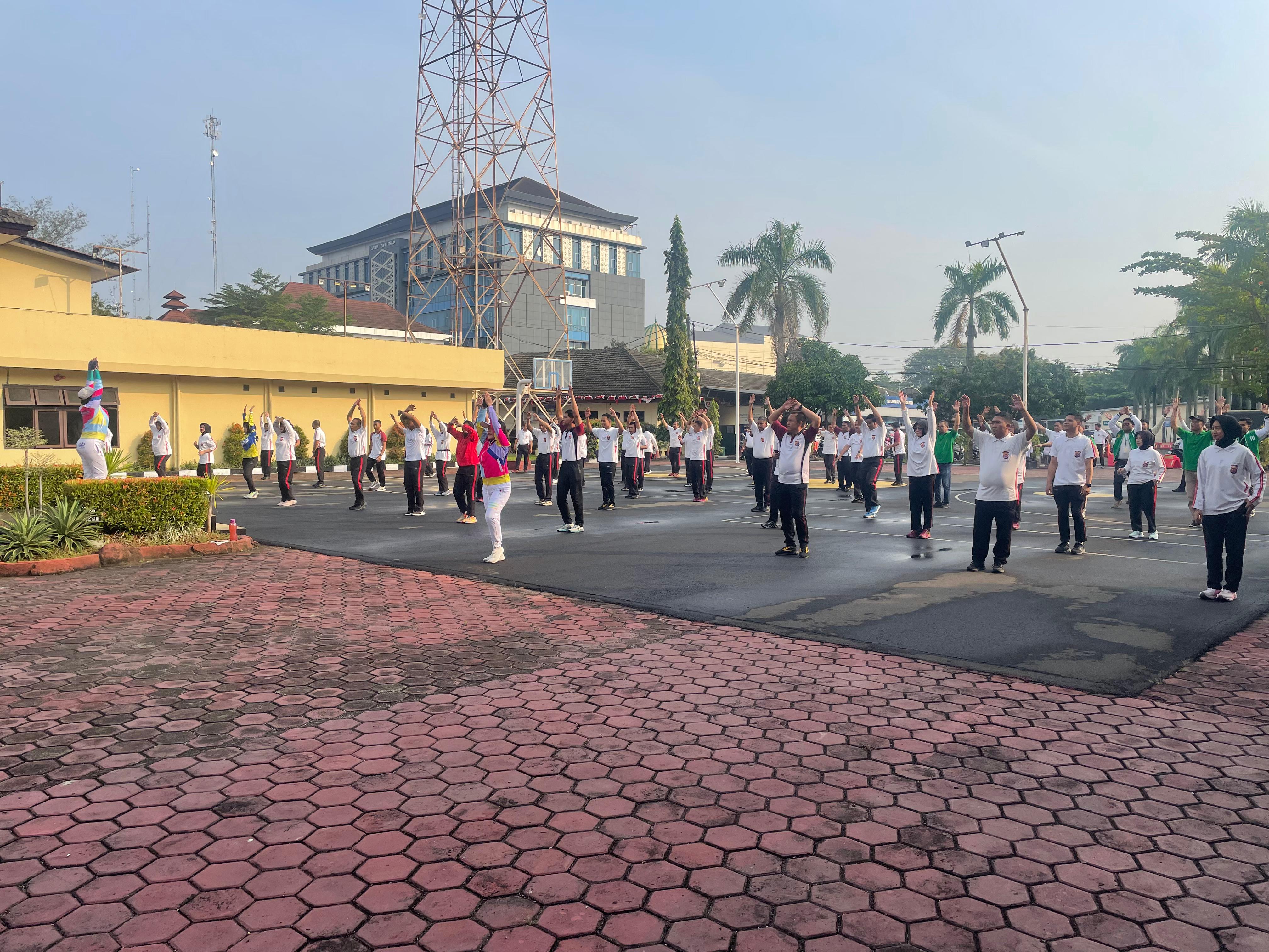 "Polres Cilegon Melaksanakan Olahraga Rutin Setiap Hari Jumat untuk Meningkatkan Kesehatan dan Kekompakan Personel"