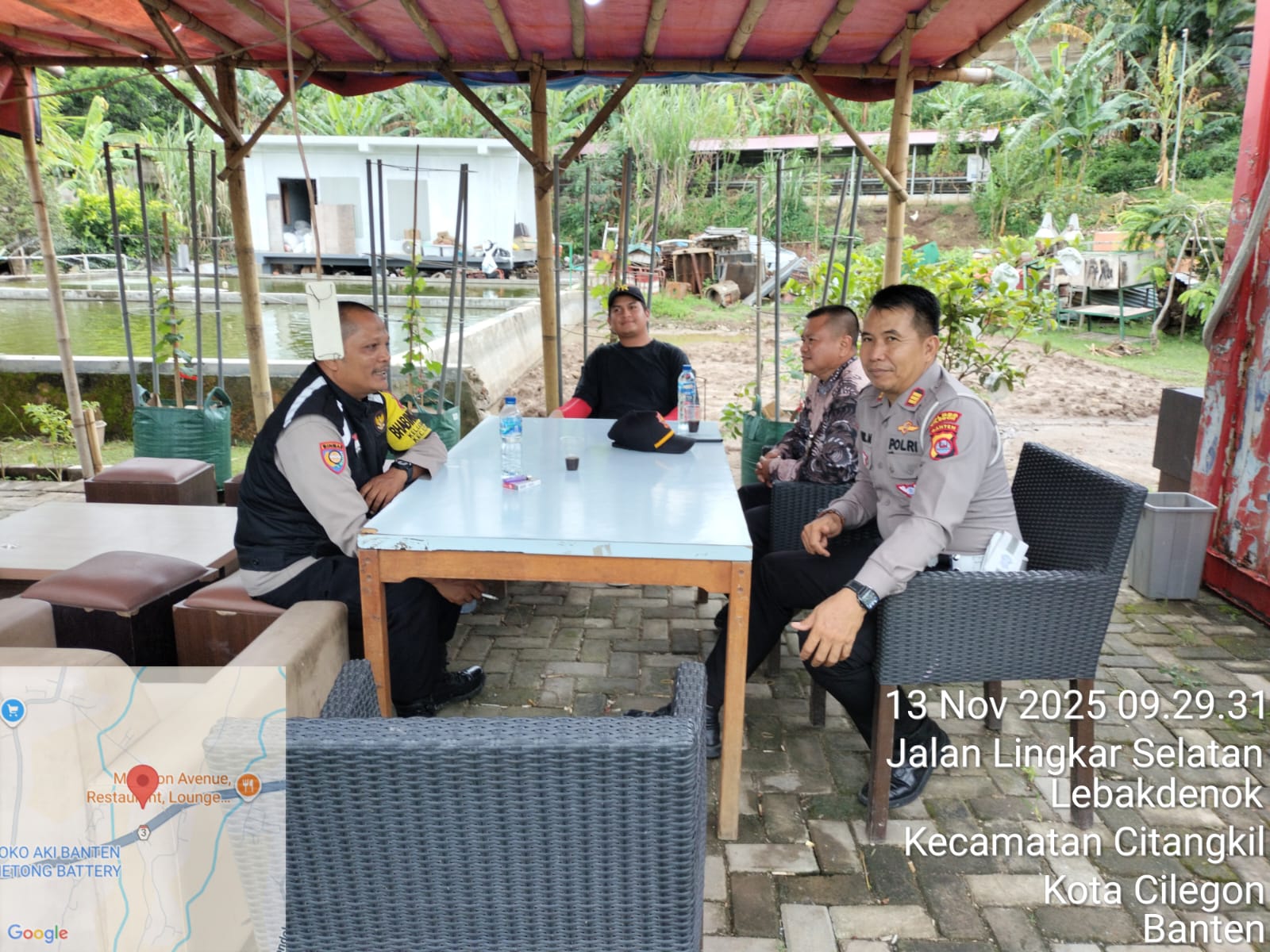 Cilegon - Kanit Lantas Polsek Ciwandan AKP Haris Munandar Bersama Bhabinkamtibmas Kelurahan Lebak Denok AIPTU Yudi Setiawan melaksanakan Himbauan SK Gubernur Dan monitoring stokfile pasir Didaerah hukum Polsek Ciwandan, Kamis (13/11/2025).