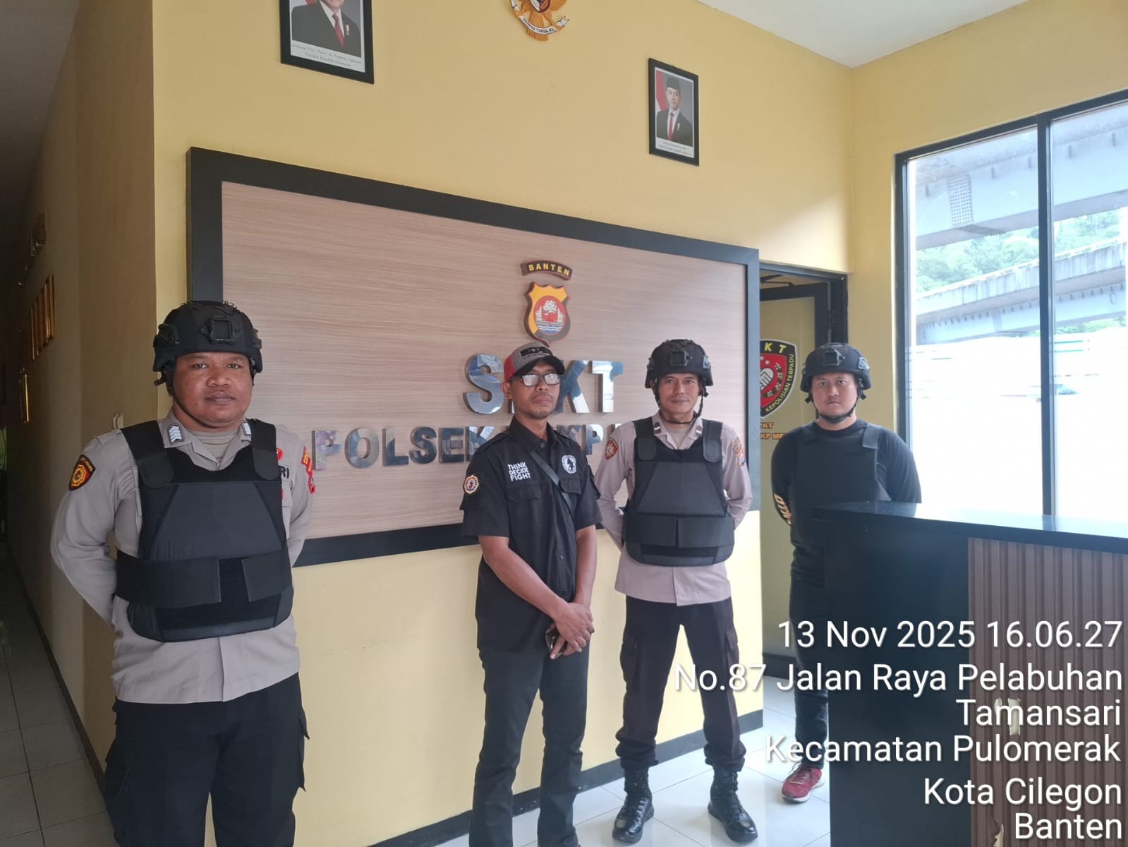 Cilegon - Personel piket jaga Polsek Kskp Merak Polres Cilgon Polda Banten melaksanakan siaga 1 Polsek pelaksanaan Sispam Mako oleh piket siaga dipimpin oleh Kspk Polsek Kskpy Merak Polres Cilegon Polda Banten, Kamis (13/11/2025).