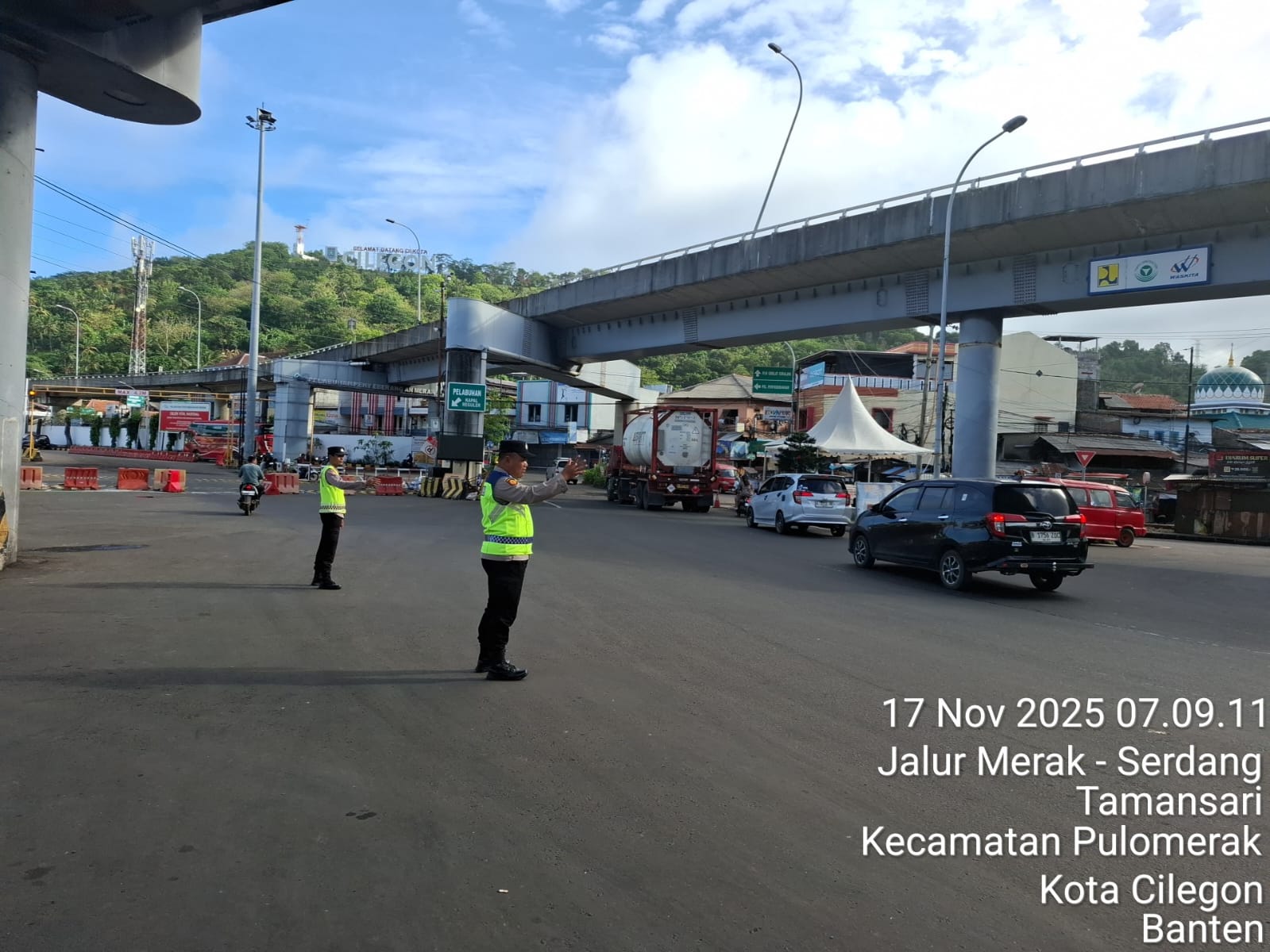 Polsek KSKP Merak Tingkatkan Pelayanan dengan Pengaturan Antrian Kendaraan