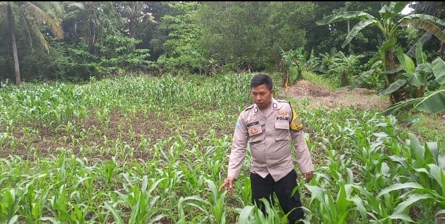 Bripka Agustoni, BhabinKamtibmas Kelurahan Kotabumi, Kecamatan Purwakarta, Kota Cilegon, melaksanakan pengecekan tanaman jagung di wilayah Jalan Kubang Lampung, Komplek KS