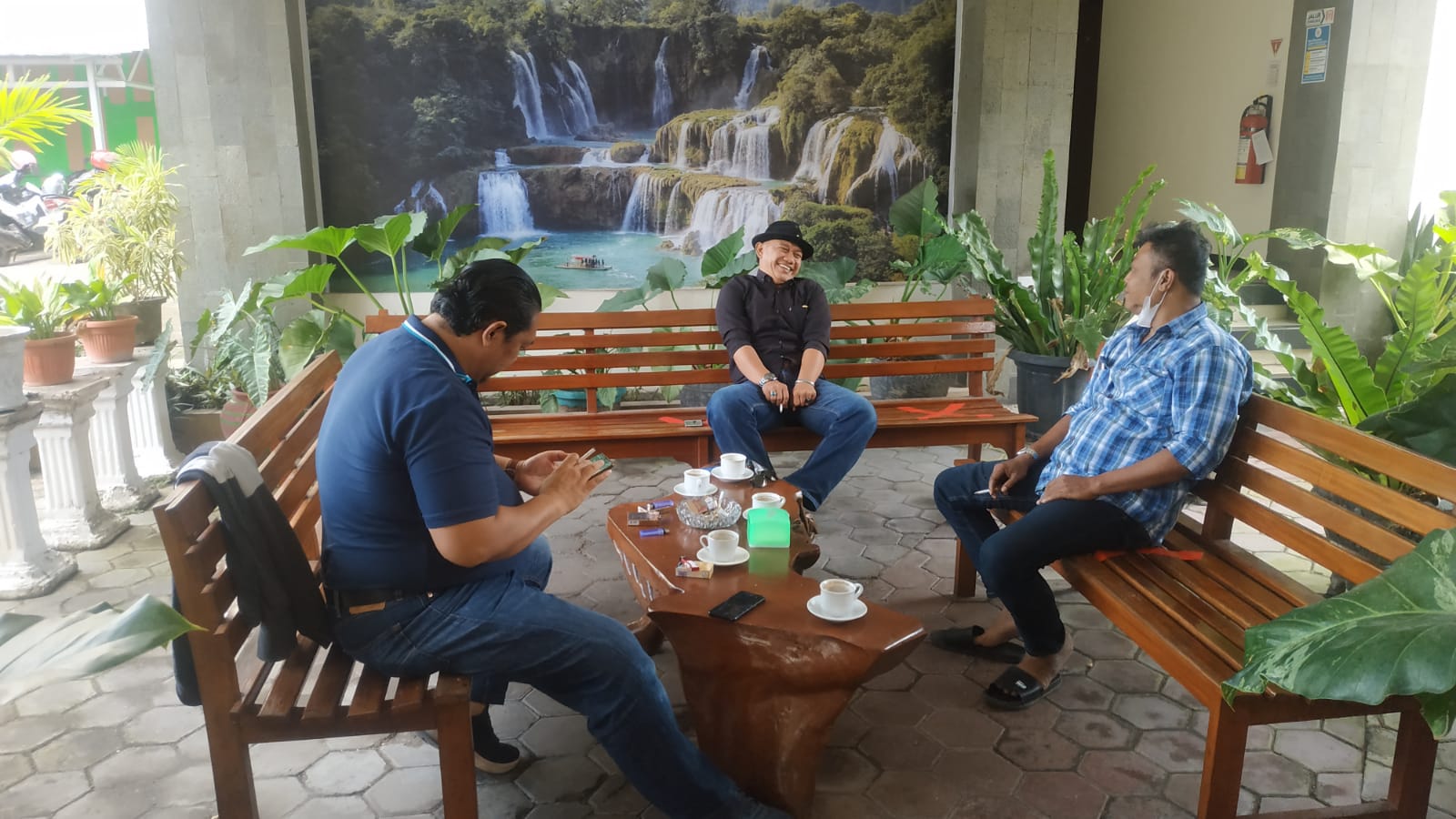 Personil sat intelkam melakukan koordinasi dengan tokoh masyarakat kelurahan kebonsari kec. Citangkil kota cilegon.