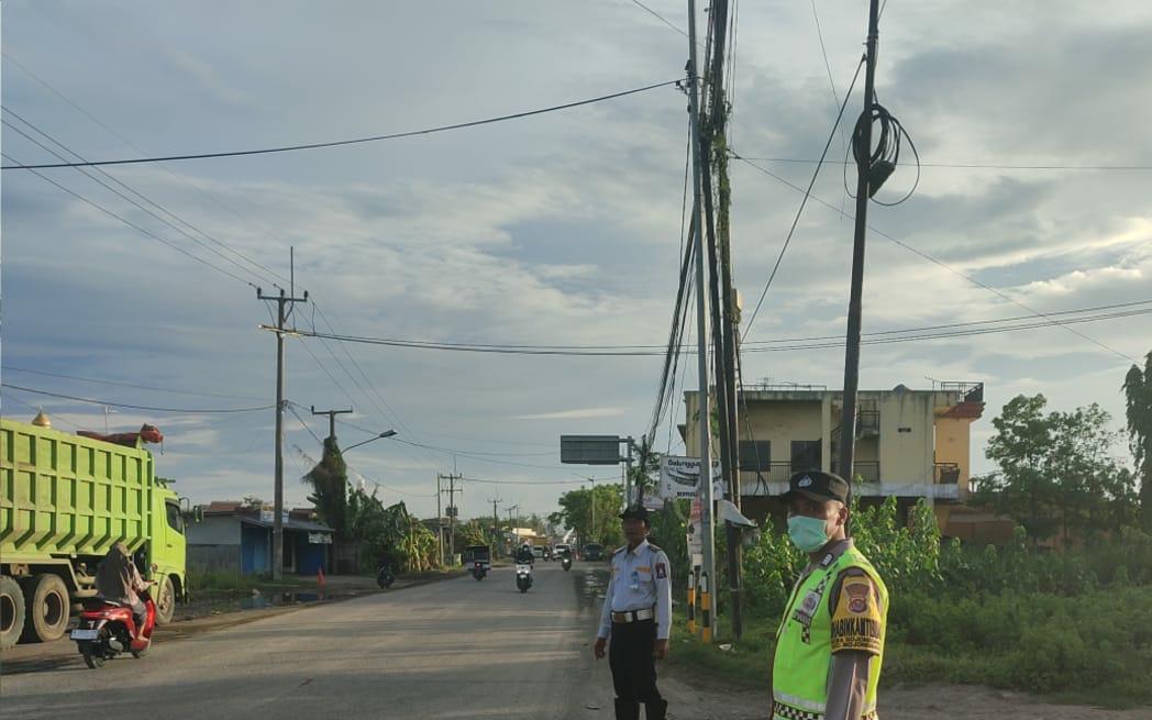 Ciptakan Situasi Lalu Lintas Aman, Personel Polsek Bojonegara dan Dishub Laksanakan Gatur Lalin Sore Hari Di Jalan Raya PT RKU Bojonegara