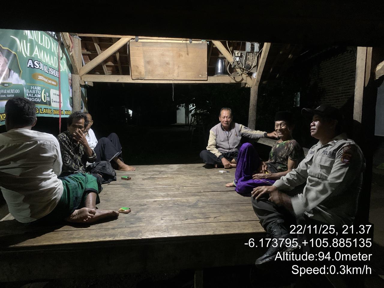 *Polres Cilegon* || Personil Bhabinkamtibmas Polsek Cinangka melaksanakan Program Komandan Wish Kapolda Banten RONDA SATKAMLING menyampaikan komunikasi dengan Petugas Siskamling agar berperan aktif dalam menciptakan Harkamtibmas yang aman dan Kondusif, Minggu (23/11/2025).
