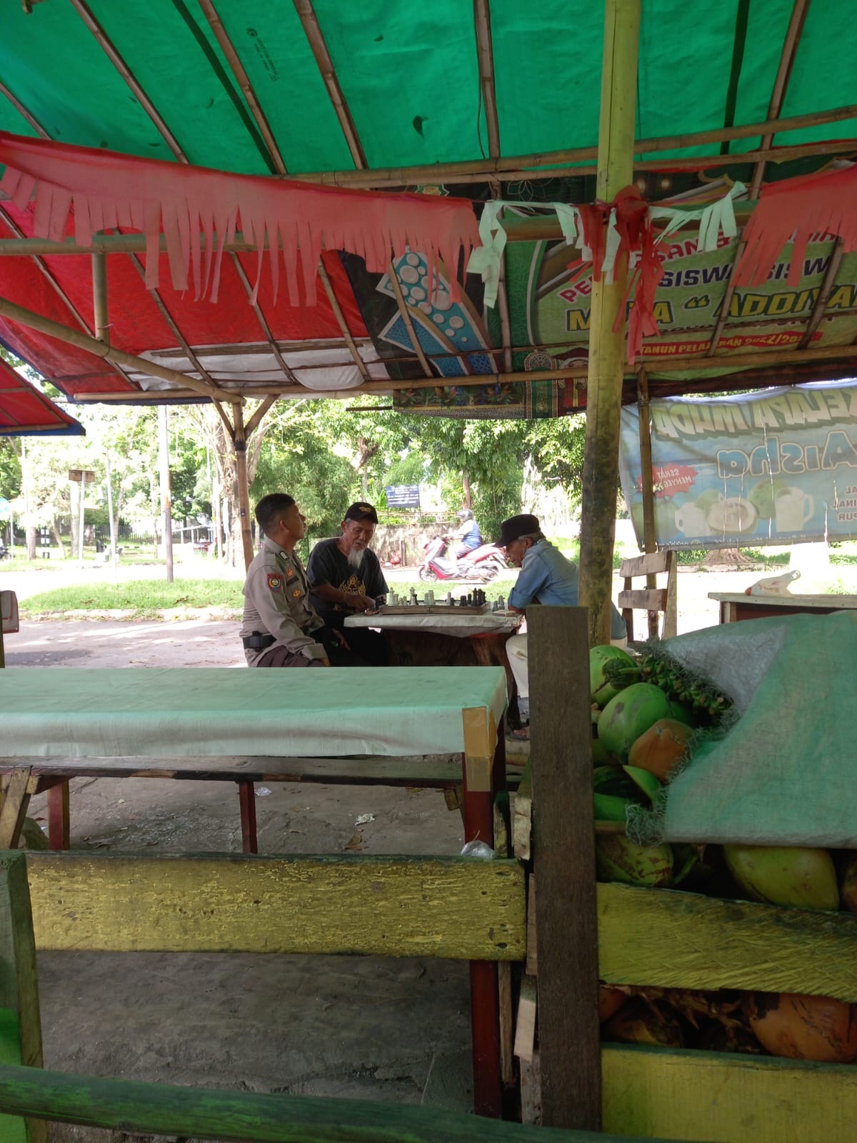 Bhabinkamtibmas Sapa Warga di Warung Kopi Bhabinkamtibmas, Imbau Kamtibmas dan Sosialisasikan Call Center 110