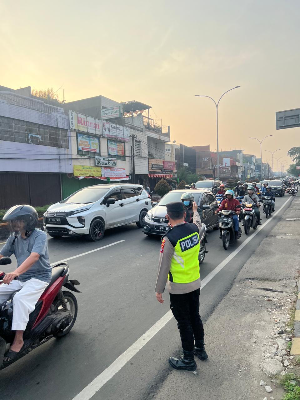 Cilegon,Polres Cilegon Polda Banten Pada Hari Senin/24/11/2025 Pukul 06.30 Wib, Personil Siwas Polres Cilegon, Brigadir Hadi Sudrajat melaksanakan kegiatan pengaturan arus lalu lintas di Jalur Protokol jalan utama Kota Cilegon.