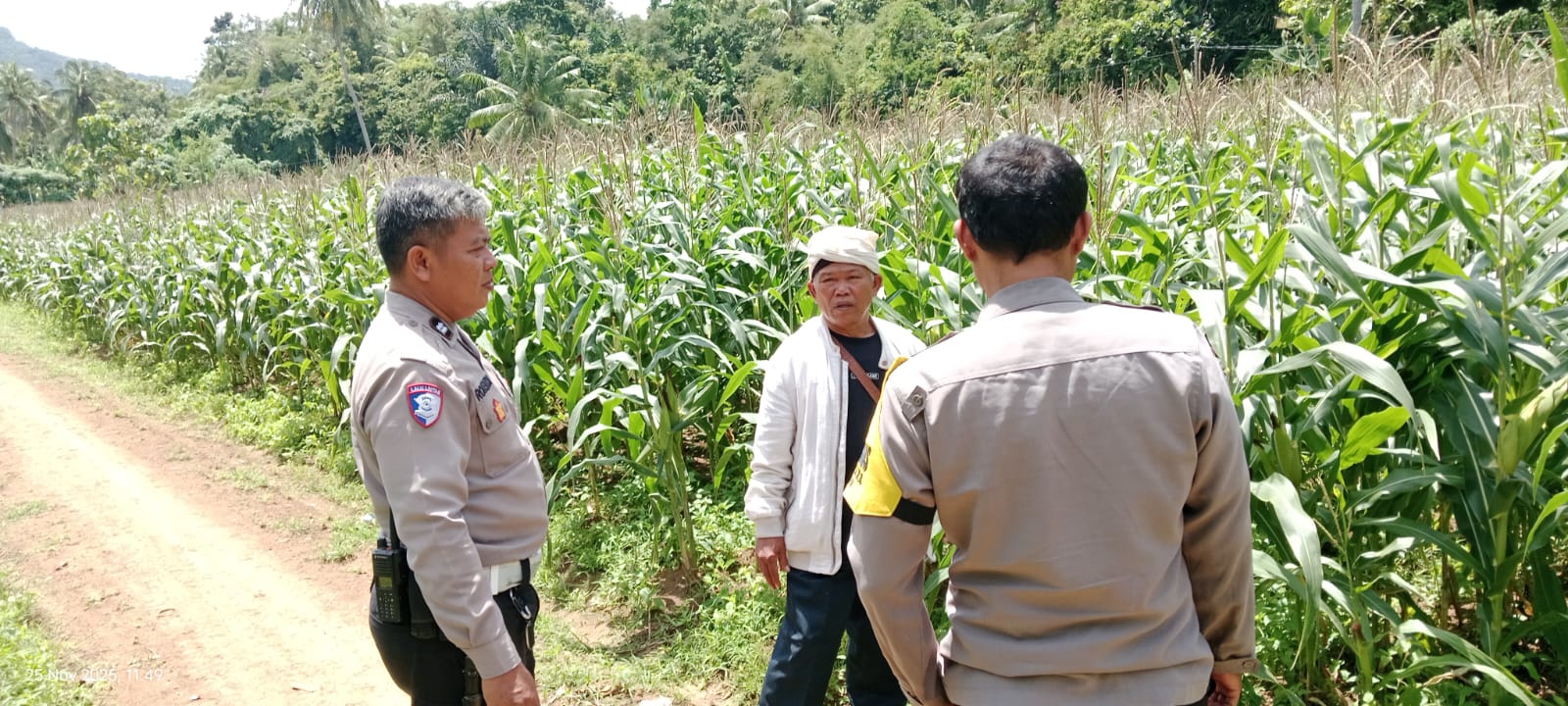 Monitoring ini dilakukan terhadap tanaman jagung yang telah memasuki usia tanam 75 hari. Selain melihat perkembangan tanaman, Bhabinkamtibmas juga melakukan dialog dengan petani untuk mengetahui kendala yang dihadapi serta memberikan motivasi dalam meningkatkan hasil pertanian.