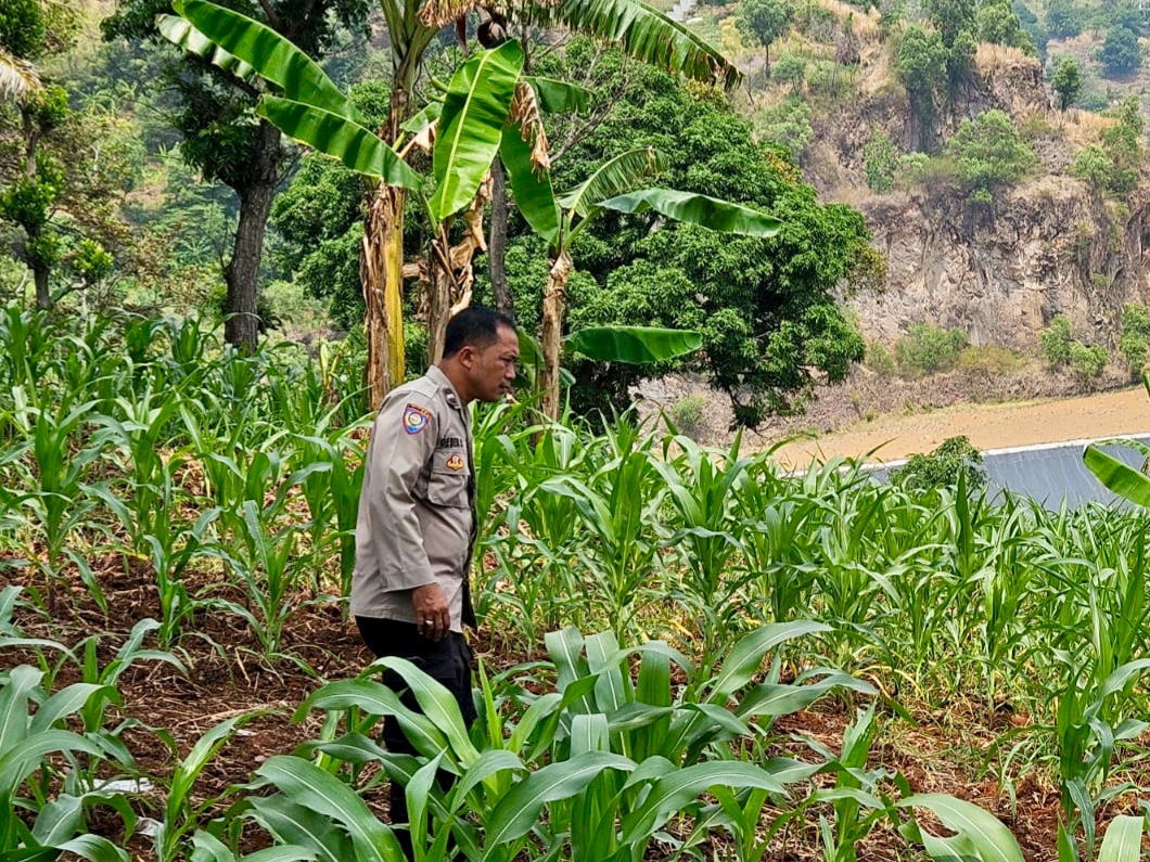 Giat Bhabinkamtibmas Lebakgede bersama poktan saat merawat tanaman jagung