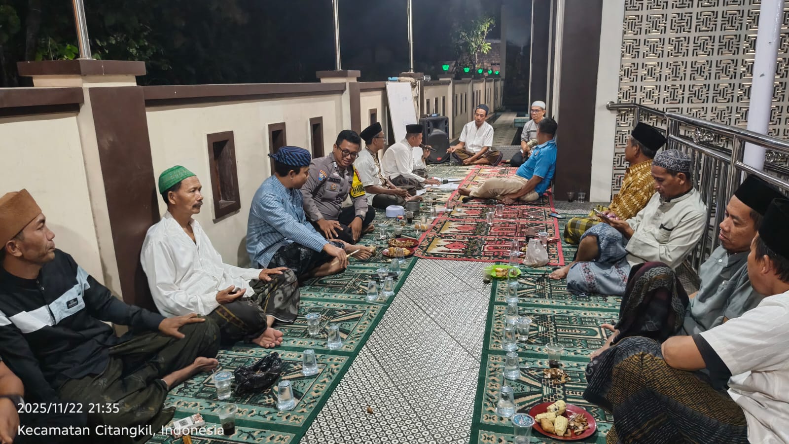 Cilegon - Bhabinkamtibmas Polsek Ciwandan Polres Cilegon Polda Banten menghadiri kegiatan Doa Bersama dan Dilanjutkan Pengajian Rutin dilingkungan Kelurahan Samangraya Kecamatan Citqngkil Kota Cilegon, Sabtu (29/11/2025).